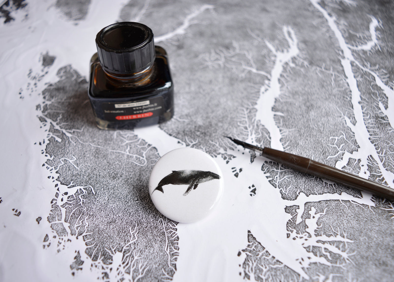 This playful button features a Humpback whale. A great way to add a little flair to your favourite jacket, apron or bag. The original design was drawn by hand using pen and ink.