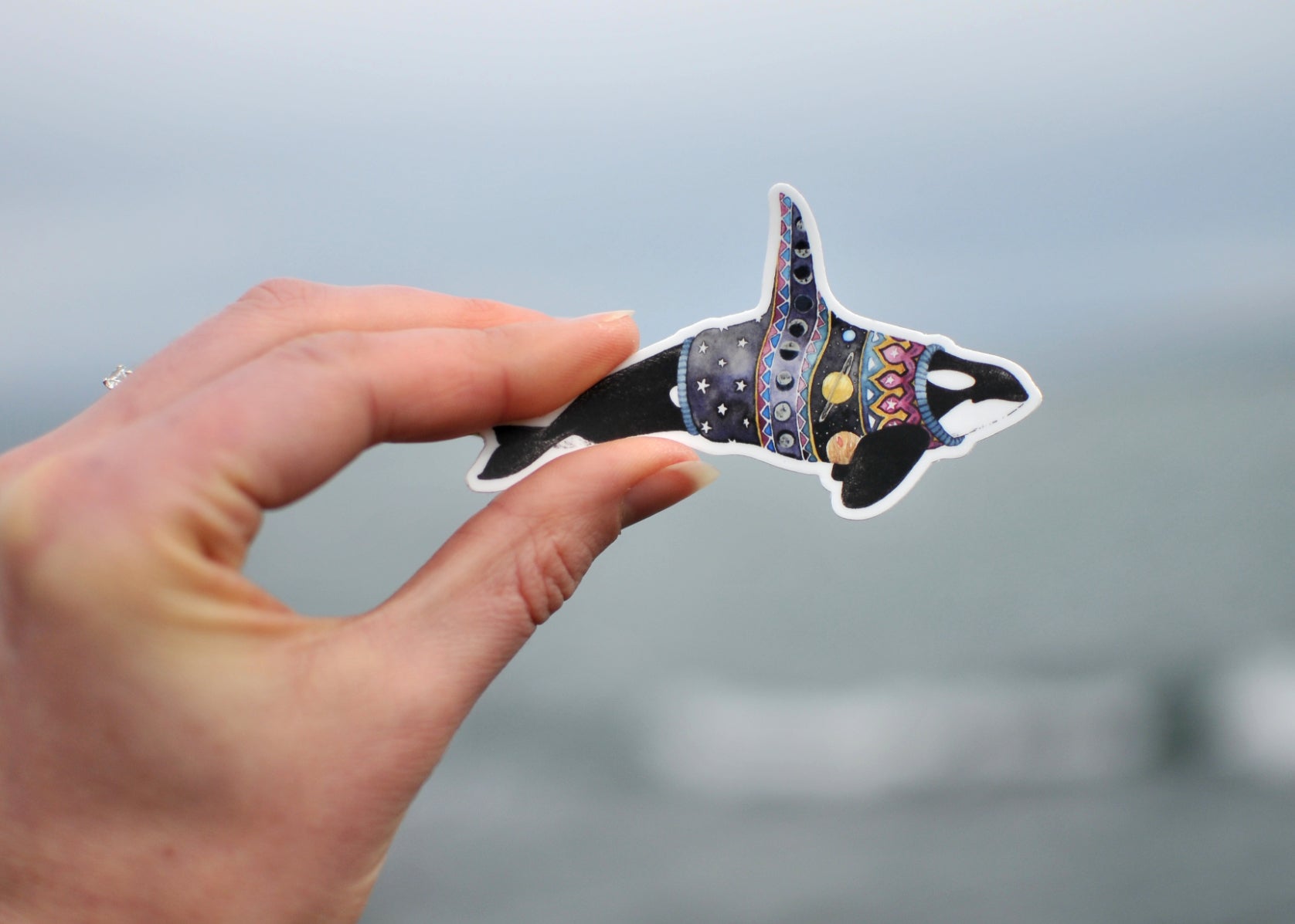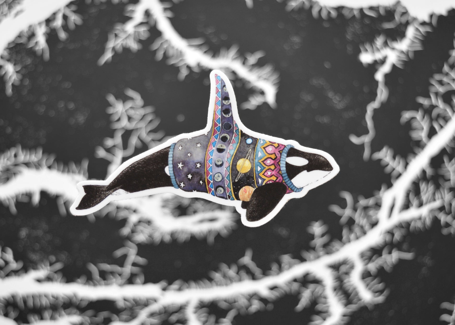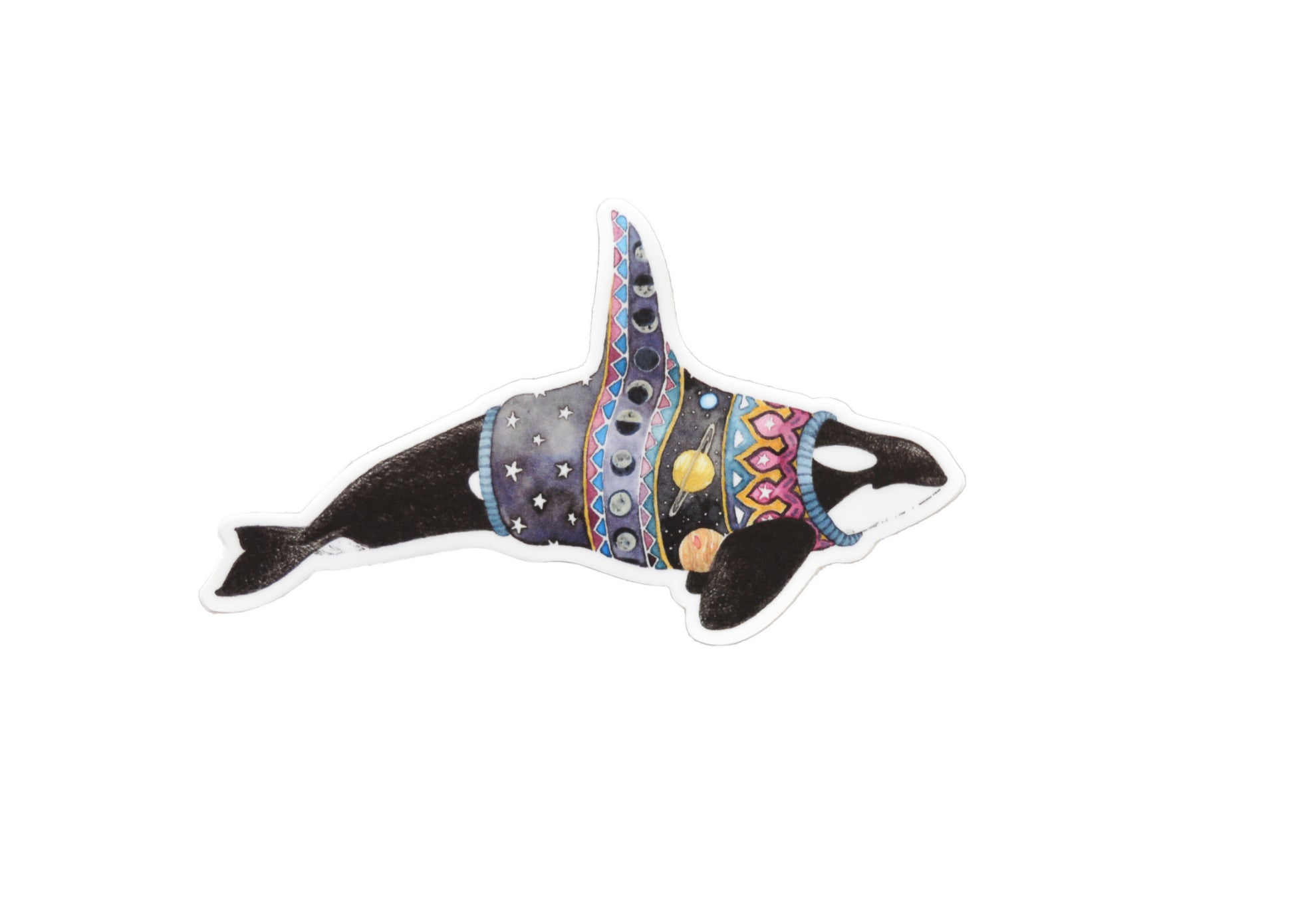 This adventurous orca is ready to boldly go where no whale has gone before! Phases of the moon, planetary alignment, and a star field are cleverly incorporated into this hand-drawn sweater. This weatherproof, UV-protected, vinyl sticker is the perfect addition to water bottles, notebook covers, laptops, and much more. A great way to add a personal touch to your favourite items or a fun gift to send to a whale-loving friend!