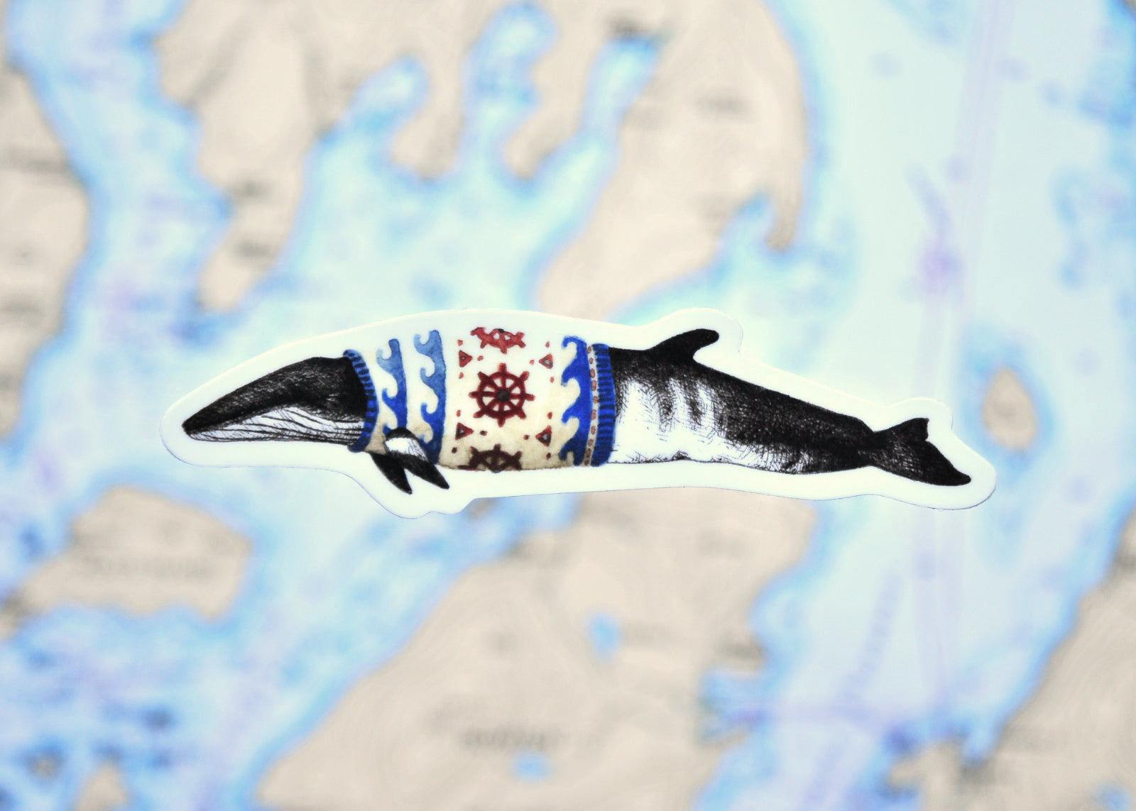 Take this curious Sweater Weather Minke along on all of your adventures! This weatherproof, UV-protected, vinyl sticker is a perfect addition to water bottles, notebook covers, laptops and much more. A great way to add a personal touch to your favourite items or a fun gift to send to a whale-loving friend!