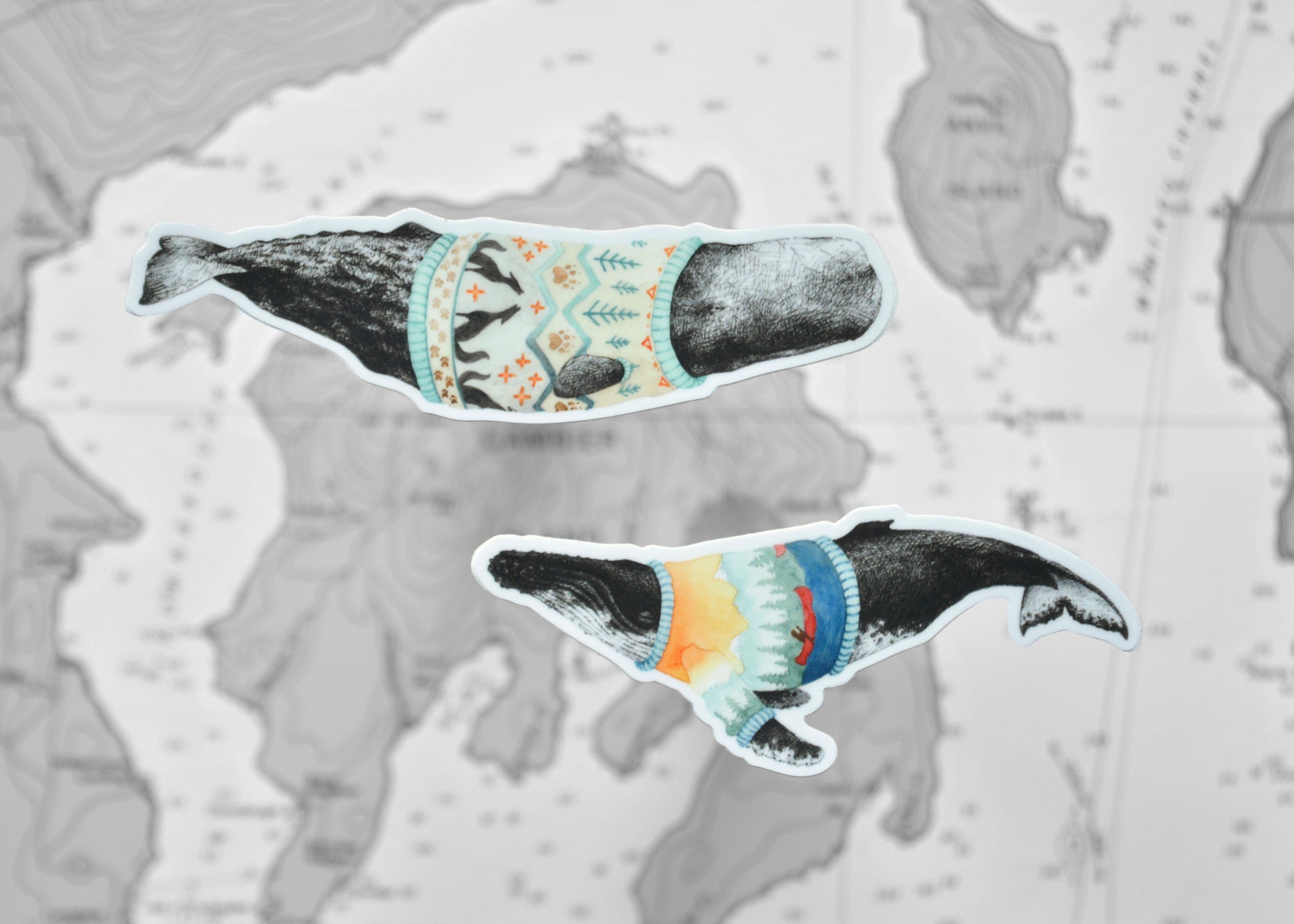 The mountains are calling! This intrepid dou are ready to head off on a new adventure. They are the perfect addition to accessorize your favourite items. Stick them to your water bottle, laptop, notebook covers, boat or send to a whale-loving friend. This set includes a sperm whale and humpback whale sticker.